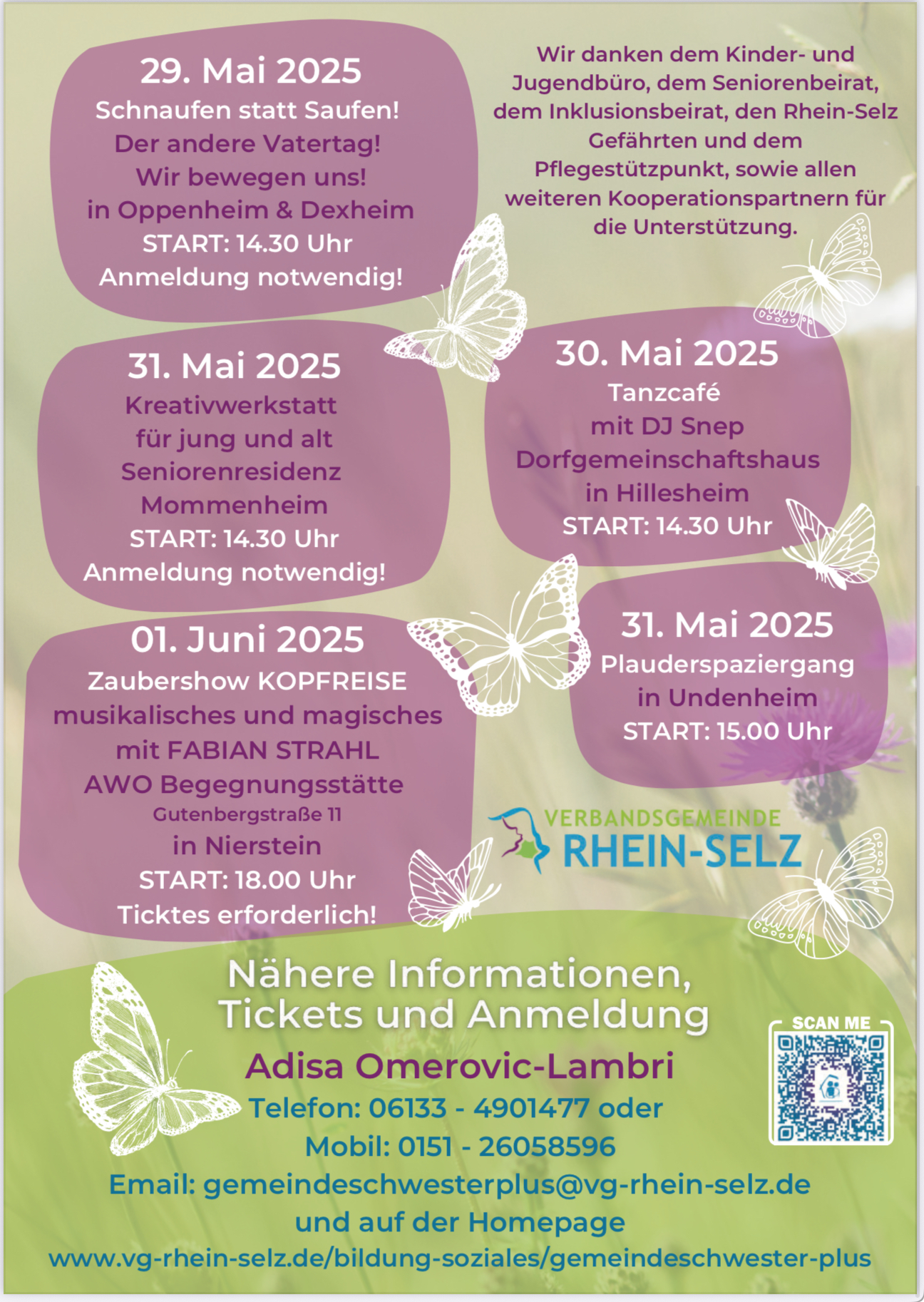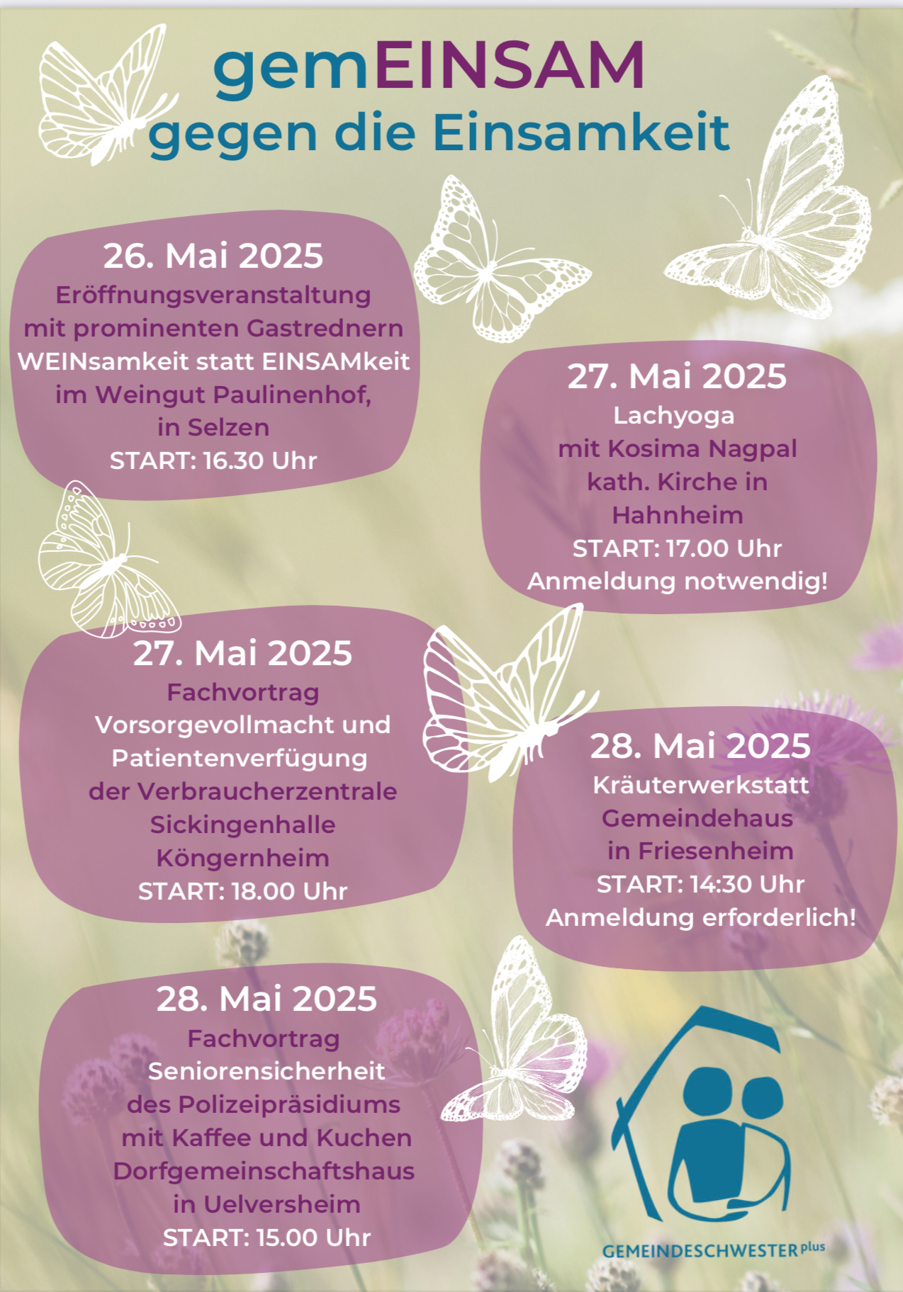 Die Verbandsgemeinde veranstaltet ein Programm gegen Vereinsamung an verschiedenen Orten. Sicher interessant. Näheres in den Plakaten die anhängen