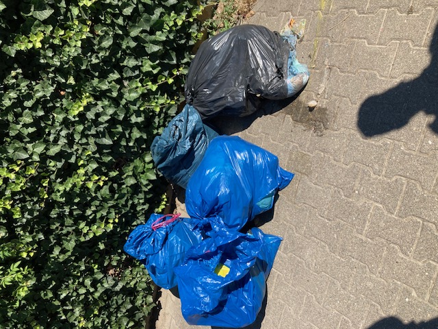 Es ist scheinbar nicht jedem bekannt, dass man, wenn die Mülltonne voll ist, nicht einfach irgendwelche Müllsäcke neben die Tonne stellen kann, in der Hoffnung der Müllwagen nimmt die dann schon mit. Das funktioniert nur, wenn man entsprechende Müllsäcke gekauft hat, die dann erkennbar bedruckt sind, damit die Müllwerker erkennen, dass dafür bezahlt wurde. Völlig schleierhaft ist mir dann die Unverfrorenheit zu sagen, dass man mit dem nicht mitgenommenen Müll nichts zu tun hat, selbst wenn man beim Ablegen beobachtet wurde. Schade, dass man es mit solche Ignoranten zu tun hat. Die Kreisverwaltung ist in dieser Sache aktiv geworden. Ein Verfahren ist eingeleitet.