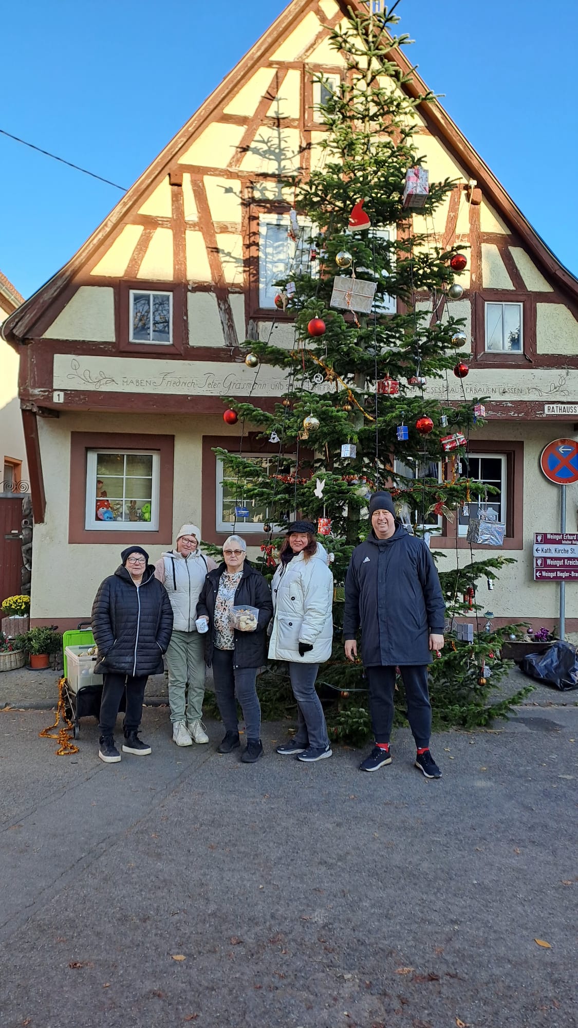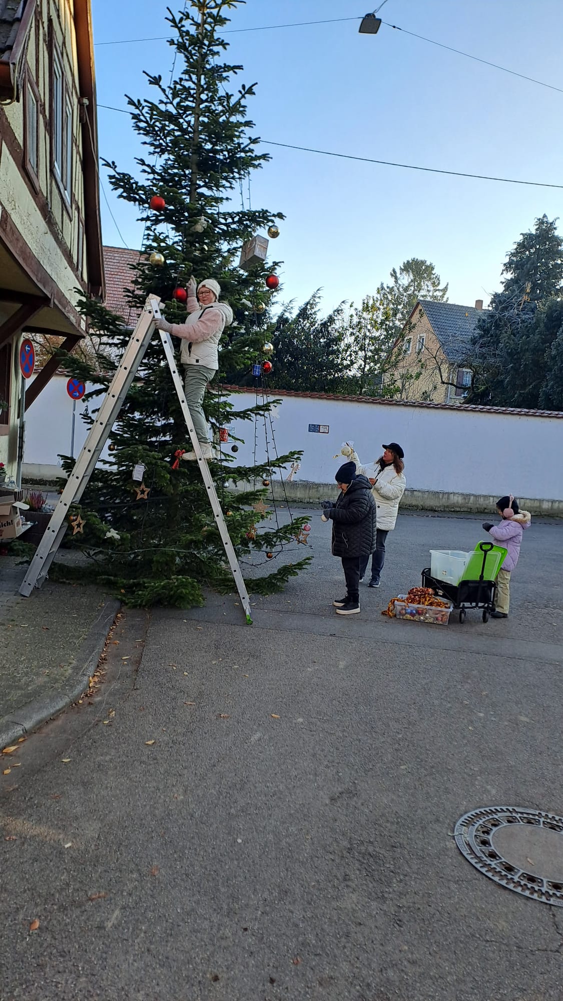 Letzten Samstag haben unsere Baumschmückexperten wieder die Bäume verschönert. Beide Bäume, in der Hauptstraße - Ecke Rathausstraße und der Baum an der Halle wurden mit Kugeln und sonstigem Allerlei geschmückt. Vielen Dank für das Engagement. Die Bäume sind eine Freude für jeden, der daran vorbei kommt.